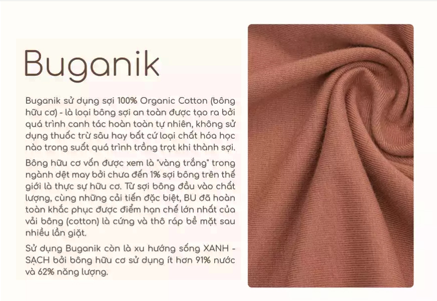 • Buganic ( 100% bông hưu cơ – Organic Cotton )