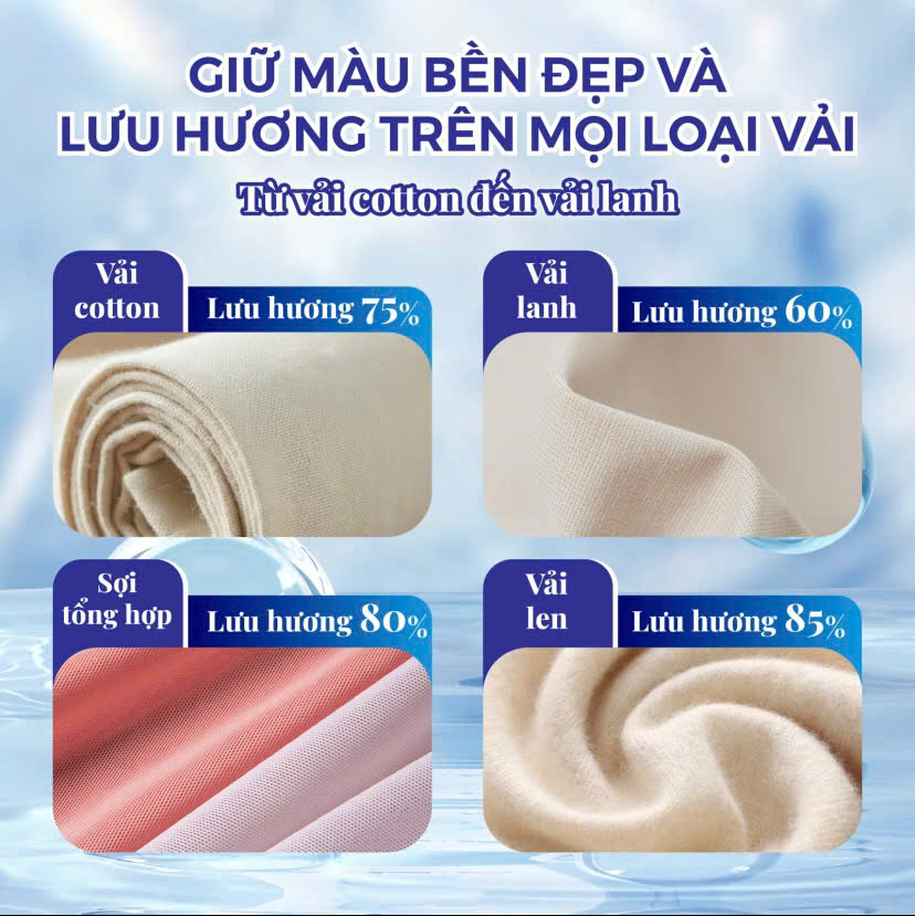 Lưu ý nhỏ: Tuyệt đối không đổ trực tiếp lên quần áo khô để đảm bảo hiệu quả làm mềm và lưu hương tốt nhất.
